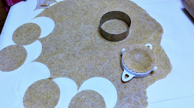 Dopo circa un'ora ho tirato la sfoglia, con l'aiuto del coppapasta e delle formine per ravioli ho preparato i ravioli (a me piacciono grandi, si fa meno lavoro a prepararli)
